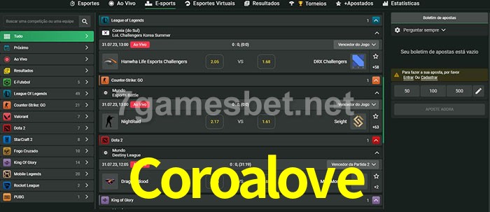 A aposta Coroalove oferece aos jogadores a experiência mais conveniente de apostas em eSports!